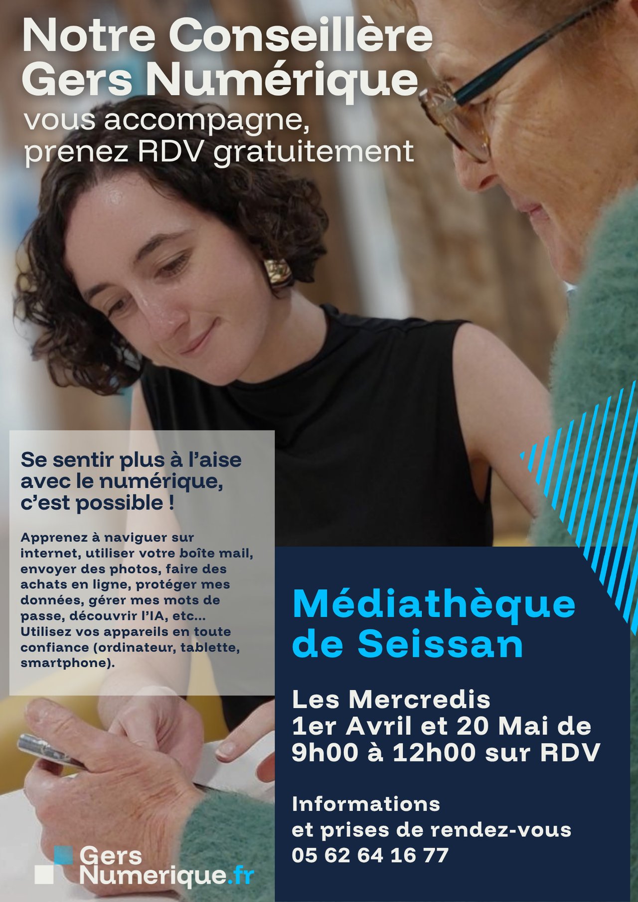 💻 Permanence Conseillère Gers Numérique à la Médiathèque de Seissan